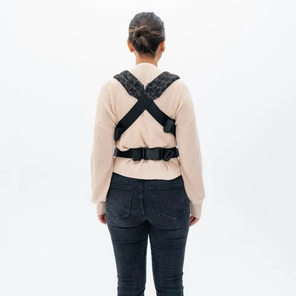 Draag je op je buik dan zijn de schouderbanden gekruist erg comfortabel, bij rugdragen is dit minder fijn maar heb je een bijgesloten verbindingsbandje die ervoor zorgt dat de schouderbanden niet zullen afzakken. Ook kan je het verbindingsbandje gebruiken om het rugpand te versmallen voor pasgeborenen, draag de stof van knieholte tot knieholte.