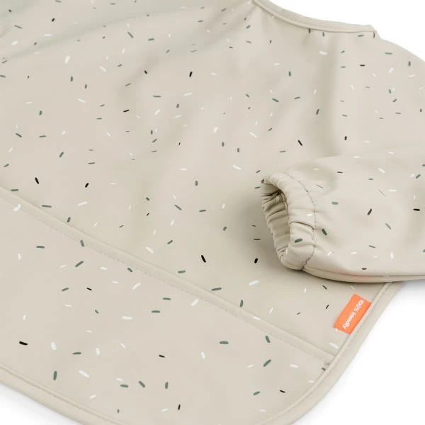 Dankzij de Done By Deer Confetti Slab Met Mouwen Sand zal je kindje niet zo snel meer over zijn of haar kleertjes knoeien. Met deze slab blijven de kleertjes schoon en droog. Dit komt mede door de mouwen die ervoor zorgen dat een groot gedeelte van de kleding van je kindje beschermt is. Naast de praktische functie van de slab, is de slab ook erg leuk ontworpen met een stijlvolle print. Verder is de Done by Deer Slab leuk te combineren met andere artikelen van Done by Deer.