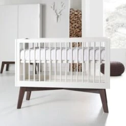 Kidsmill Sixties Babybed Wit Mat / Walnoot 70 x 140 cm