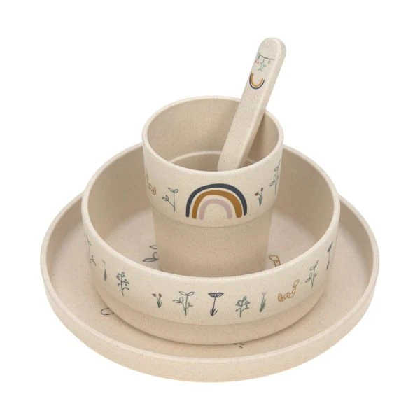 Met de Laessig Garden Explorer Dinerset heb je een een complete set voor je kindje. De set bestaat uit een bordje, mokje, kommetje en een lepel voor kleine maaltijden. Alle items zijn voorzien van een leuk printje.