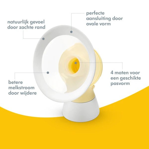 De Medela Swing Flex is een enkele elektrische borstkolf waarmee je supersnel en op een comfortabele manier melk af kunt kolven. Dankzij de nieuwe Flex-technologie kun je kolven in een houding die jij prettig vindt, de kolf is namelijk voorzien van een overloopbeveiliging. Het vernieuwde borstschild heeft een gladde, zachte rand en een hoek van 105°. Samen met de ovale vorm voor een perfecte pasvorm zorgt dit ervoor dat je op een zeer comfortabele manier kunt kolven in iedere gewenste houding. Doordat je het ovale borstschild kunt draaien ontstaat er voor iedere vrouw een perfecte pasvorm. Bij deze set worden borstschilden in maat 21 en 24 mm meegeleverd. Er zijn ook borstschilden van 27 en 30 mm verkrijgbaar. Kolven met de Flex-technologie levert 11% meer melk op en zorgt voor 4% betere lediging van de borst. De Medela Swing Flex werkt met een 2-phase expression technologie. Deze technologie kolft in 2 fases, dit imiteert perfect het natuurlijke zuiggedrag van je baby. De nieuwe connector bestaat uit minder en grotere onderdelen waardoor je de borstkolf nog makkelijker schoon kunt maken.