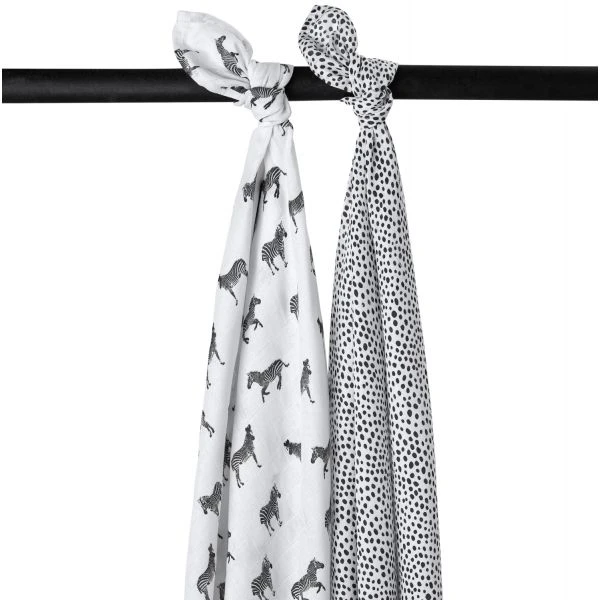 Meyco Zebra / Cheetah Swaddle Black 2 Stuks