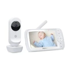 Met de Motorola VM 35 Babyfoon heb je prettig zicht op je kindje wanneer het in bed ligt. De babyfoon met 5 inch kleuren beeldscherm heeft allerlei handige opties om je kindje in de gaten te kunnen houden. Zo heeft de babyfoon een zoomfunctie, infrarood nachtzicht, wordt de kamertemperatuur getoond en heeft de Motorola babyfoon een bereik van 300 meter. Is je kindje onrustig? Maak dan gebruik van de terugspreekfunctie of slaapliedjes om je kindje gerust te stellen. De babyfoon wordt geleverd met een ouderunit, babyunit en 2 adapters.