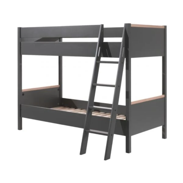 Het Vipack Londen Stapelbed Hoog Antraciet 160 cm is een kwalitatief bed waarin 2 kindjes kunnen slapen. Het bed is voorzien van een stijlvol uiterlijk door de houtkleurige details. De schuine trap kan zowel aan de linker- als rechterkant gemonteerd worden. Het bovenste bed heeft een dubbele uitvalbeveiliging, zodat je kindje veilig zal slapen. Het bed is gemaakt van hoogwaardig materiaal.