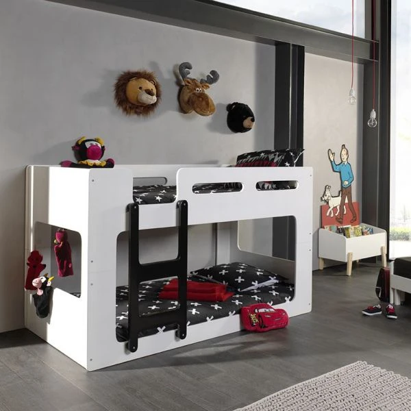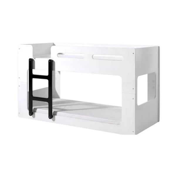 Het Vipack Luca Stapelbed Wit is een leuk en speels meubel. Het bed is volledig wit afgewerkt met een trap in een zwarte kleur eraan vast gemonteerd. Zo is de complete look een unieke verschijning! Het stapelbed is lager dan een standaard stapelbed. Deze laagheid komt doordat het onderste bed op de grond bevind. Uiteraard worden er kwalitatieve lattenbodems bij dit bed geleverd.
