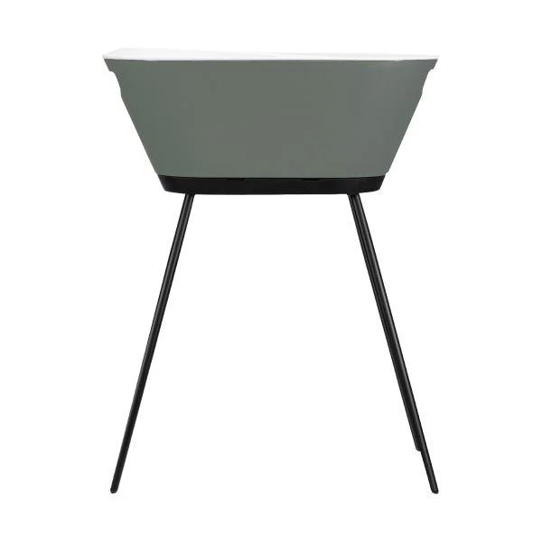 De We-Too 4-Delige Badset Black / Dark Green bestaat uit een bad, badstandaard en een badzitje waarmee je het badje al vanaf de geboorte kan gebruiken. Zodra je kindje zelfstandig kan blijven zitten is het badzitje niet meer nodig. Het stijlvolle badje is voorzien van een dubbele wand waarmee de warmte net iets langer wordt vastgehouden en je kindje optimaal kan genieten van zijn of haar badtijd. Bovendien is het badje extra groot en kan daarom langer worden gebruikt. Je kan het badje zowel op de grond als op de We-Too badstandaard gebruiken. De badstandaard bestaat uit een base en metalen poten die zijn voorzien van kunststof dopjes. Het badje is eenvoudig op de badstandaard te monteren en zorgt ervoor dat je je kindje op een aangename hoogte in bad kan doen. Verder voldoet de We-Too badset aan de meest strenge veiligheidseisen en kan worden gebruikt totdat je kindje zelf kan gaan staan. De We -Too badjes zijn voorzien van een warmtegevoelige badstop. De badstop reageert op de temperatuur van het water. Bij het afkoelen van het water (kouder dan 35°) verandert de kleur van de badstop naar de kleur blauw en wanneer de temperatuur van het water warmer is dan 35° kleurt de badstop wit. Een groot voordeel van deze badstop is dat je snel kunt zien wanneer het water te ver is afgekoeld voor het kind.
